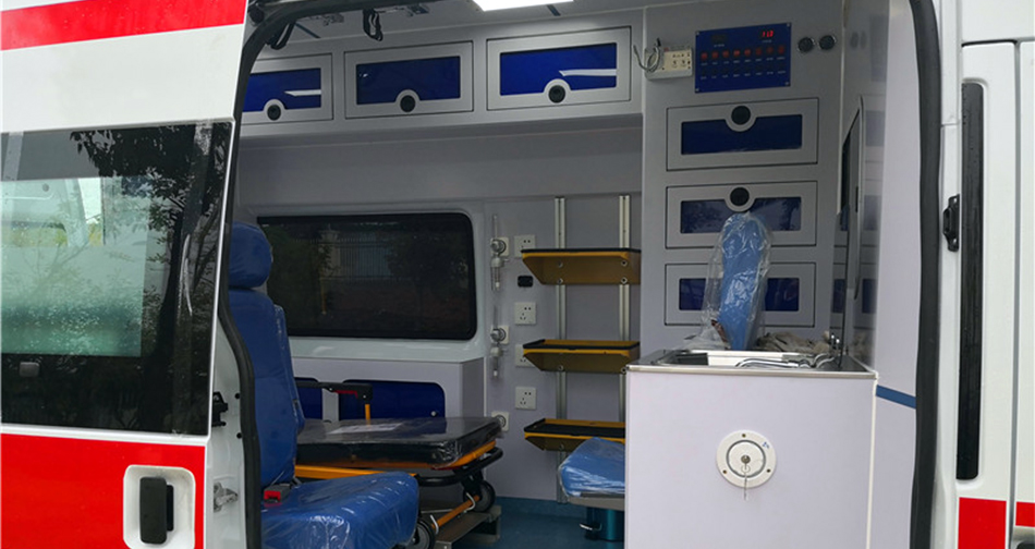 医疗舱内设空调出风口及橱柜总成系统,设有急救箱柜、抽屉柜及折叠式座椅,可让医护人员在无需离开座椅并系有安全带的情况下进行护理操作可满足设备放置需求。